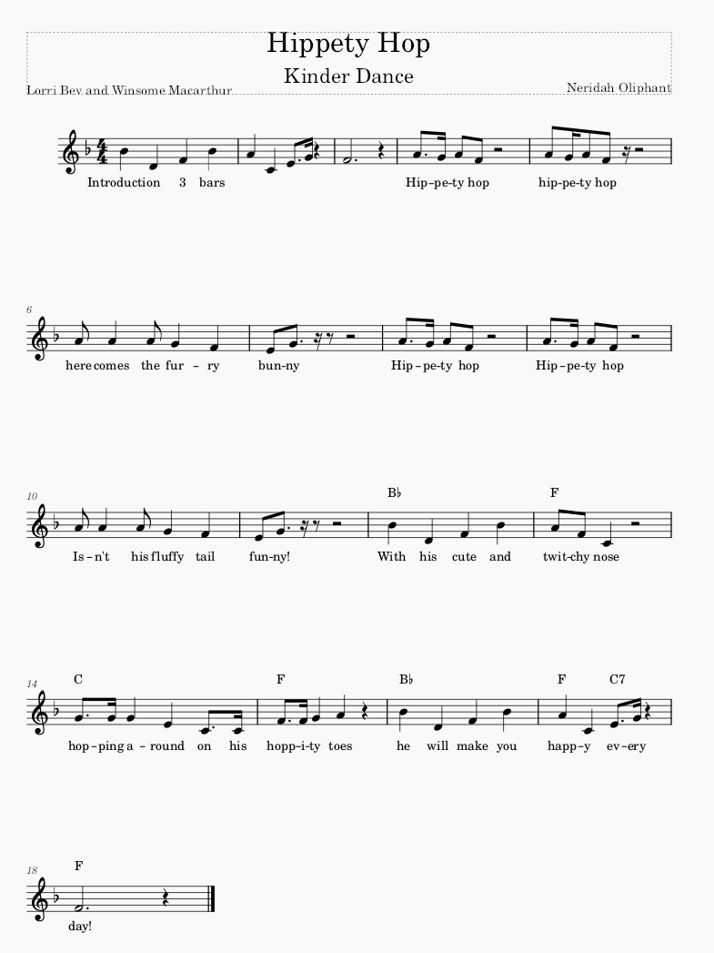 Melody of dance, Hippity hop written by my dear departed friend, Neridah Oliphant.
